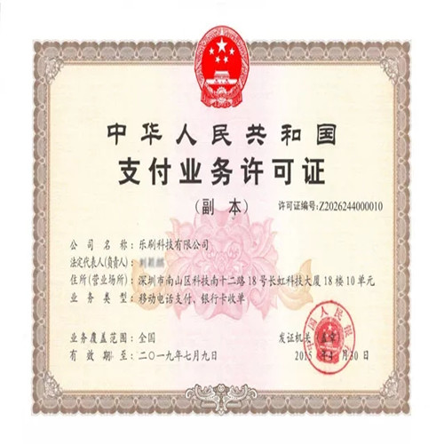 有了這些信息,你還覺得不合法么,那么我們可以查看中央人民銀行的營業牌照,這樣就可以證明樂刷pos機的安全,合法了。中央人民銀行授予樂刷科技的樂刷pos機支付許可證。這樣就完全可以知樂刷電簽到底合不合法了。